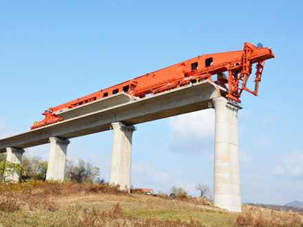 以及生產(chǎn)更新運架產(chǎn)品能架設(shè)跨度40M高速鐵路箱梁的:SXJ1000T/40M一跨式架橋機(jī)(配套攀爬式運梁車可以實現(xiàn)過隧道零距離架梁)和攀爬式運梁車。并能對現(xiàn)有32M分體式運架設(shè)備進(jìn)行改造,改造后能實現(xiàn)高低位架設(shè)跨度40M高速鐵路箱梁(高位改造不能過隧道,把原架橋機(jī)改造一跨式,把原運梁車增加2軸。低位改造能過隧道架梁,把原架橋機(jī)改造一跨式低位,把原運梁車改成攀爬式運梁車并增加二臺喂梁臺車實現(xiàn)過隧道架梁)。